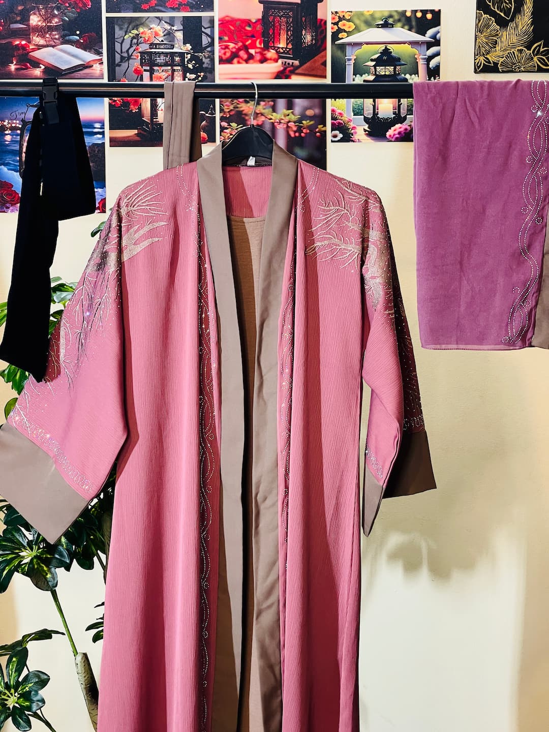 ☼ Includes: Outer Abaya, CY Inner, Matching Hijab, Belt (4-piece set – all free items included)